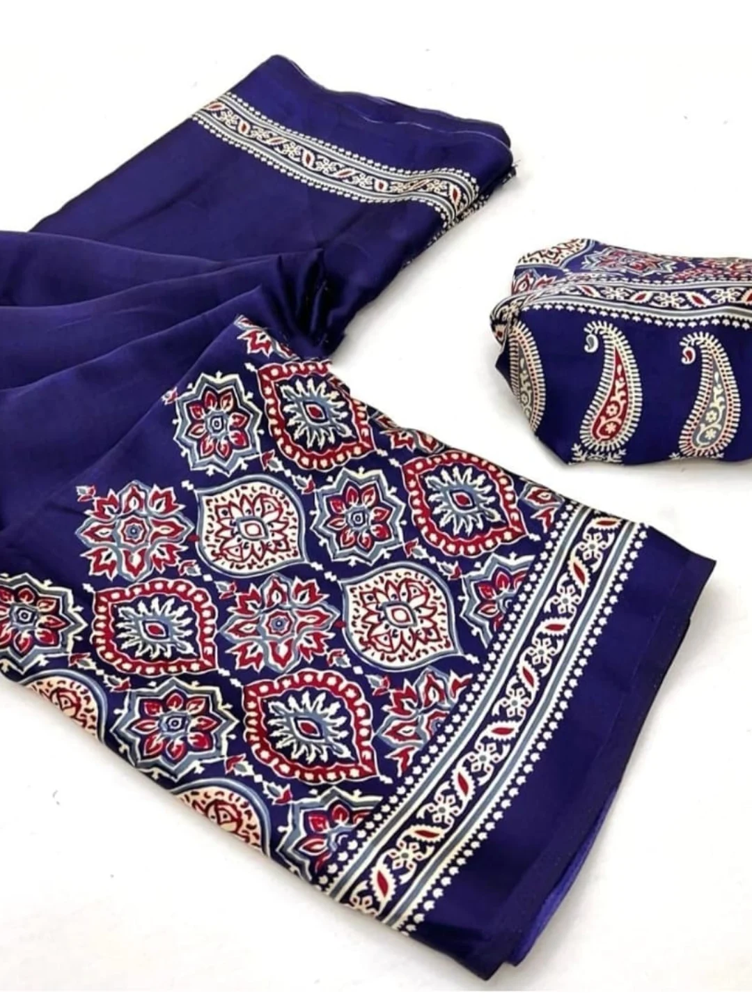 Ajrakh Design Saree With Bandhni matching Blouse